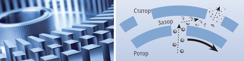 • для мокрого помола с помощью мельницы с регулировкой зазора;