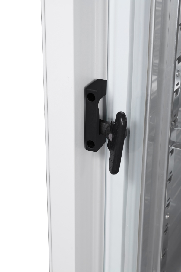 - 2 регулируемые по высоте полки из нержавеющей стали с нагрузкой 45 кг каждая;