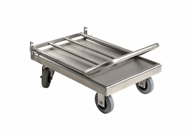 • Изготавливаются из нержавеющей стали — материал один из наиболее гигиеничных, тележки просты в уходе, легко дезинфицируются;