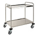 Тележка лабораторная 1: материал — нержавеющая сталь 18/10 (18% Cr + 11% Ni); полированная антимагнитная поверхность; надежно сваренная конструкция; 2 поворотных колеса со стопорами; полка 800х500 мм, макс. нагрузка 40 кг/полку; тип 1 — 2 полки.