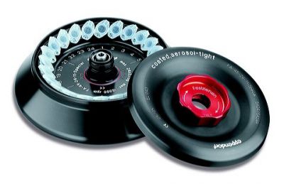Высокоскоростной ротор для аэрозоленепроницаемого центрифугирования с тефлоновым покрытием для повышения химической устойчивости, с крышкой.