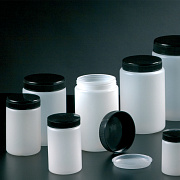 Круглая белая банка из ПЭВД на 500 мл, имет черную винтовую крышку. Предназначена для лабораторного использования в качестве емкости для хранения реактивов, нейтральных к материалу ПЭВД.