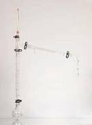 Дистиллятор для определения мышьяка состоит из колбы 250 мл, насадки с краном и каплеуловителями, двух склянок с пробками и трубки. Стеклянные изделия крепятся на штативе (возможна поставка без штатива).