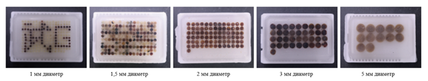 Ключевым преимуществом ручки-панчера является ее универсальность и точность при работе с тканями. Инструмент доступен в пяти вариантах диаметров: 1,0 мм, 1,5 мм, 2,0 мм, 3,0 мм и 5,0 мм, что делает его подходящим для широкого спектра экспериментов. Ручка-панчер обеспечивает высокую плотность информации на единицу площади стекла, что особенно важно для масштабных исследований.