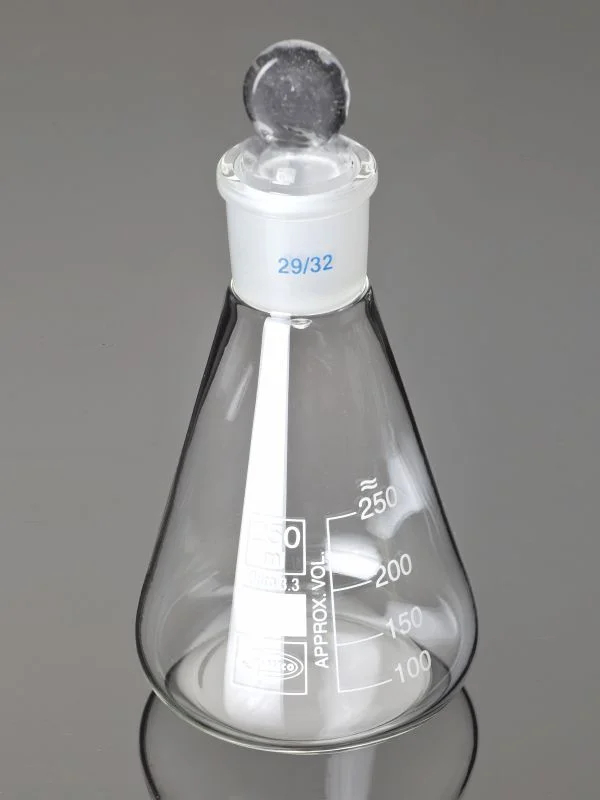 Колбы Эрленмейера Glassco — это конические лабораторные колбы с плоским дном, изготовленные из ударопрочного боросиликатного или из химически стойкого кварцевого стекла. Широко применимые, универсальные емкости считаются одним из самых востребованных типов лабораторной посуды.