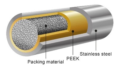 Частицы наполнителя серии колонок FastCore произведены по технологии Core Shell и представляют собой твердое ядро, с пористой структурой снаружи. Колонки такого типа призваны поддерживать высокую эффективность разделения компонентов при высоких скоростях потока подвижной фазы, что значительно повышает скорость анализа. Модификация поверхности с использованием реагентов высокой чистоты обеспечивает высокую эффективность и надежную воспроизводимость результатов от колонки к колонке.