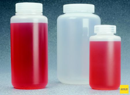 Прозрачные бутылки автоклавируемы и имеют отличные механические прочностные свойства. Предназначены для осаждения (например, при сборе культивированных клеток и биохимических исследований белка, включая осаждение сульфатом аммония).