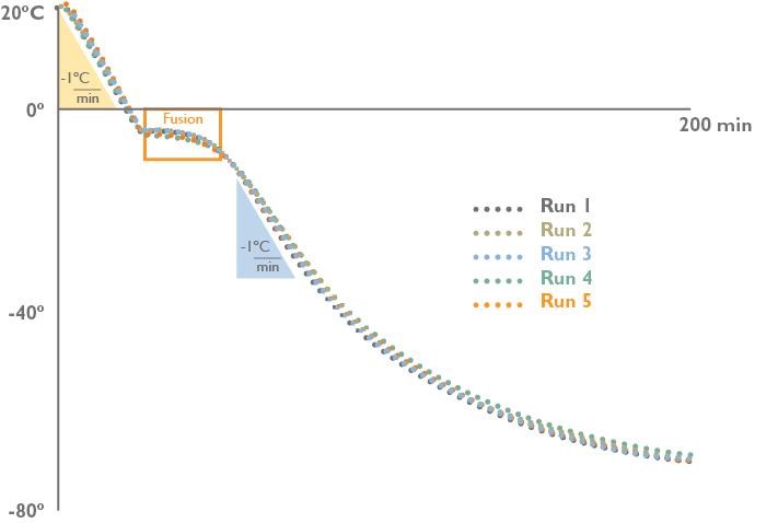Mr. Frosty предназначены для медленного замораживания живых клеток в криопробирках. Контейнер позволяет избежать резкого снижения температуры, и обеспечивает медленное и равномерное замораживание со скоростью -1°C/мин, которая является оптимальной для сохранения живых клеток.