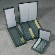 Планшеты для хранения и перемещения препаратов ёмкостью от 25 до 100 стекол изготовлены из полимерных материалов высокой механической прочности.