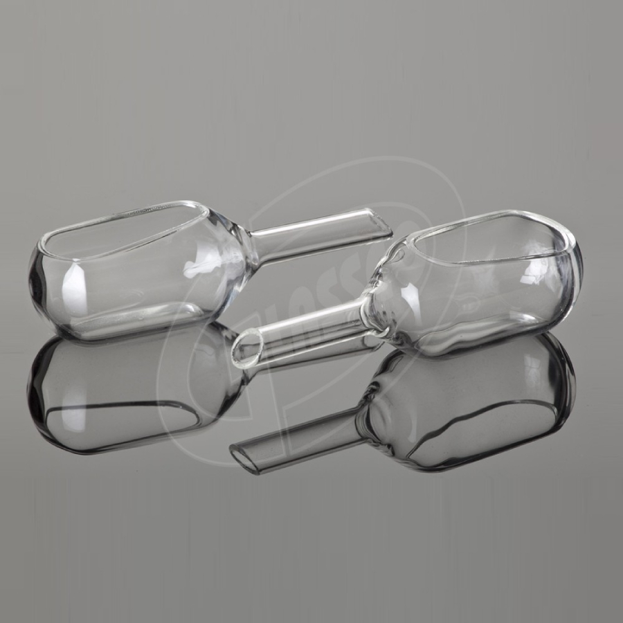 Совочки-воронки используются для удобного взвешивания сыпучих и порошкообразных веществ, навеску которых удобно засыпать в большое отверстие в расширенной части совочка, переходящего на конце в трубку для пересыпания пробы в емкость.