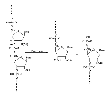 - для удаления нуклеиновых кислот во время экстракции белка: бензонуклеаза уменьшает вязкость образца и облегчает последующие операции по очистке рекомбинантного белка или экстракции белка из образцов клеток тканей;