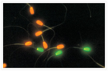 4. Исследование клеток под флуоресцентным микроскопом осуществляют, используя двойной набор фильтров для FITC и родамина.