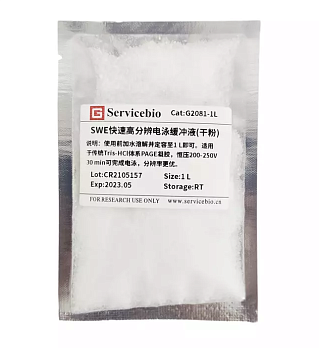 Буфер SWE rapid с высоким разрешением, оптимизированный на основе трис-глицинового проточного буфера, подходит для использования с гель-электрофорезом Tris-HCl SDS-PAGE. По сравнению с традиционным буфером Трис-глицина, при использовании этого буфера для электрофореза напряжение можно повышать до 200-250 В, что сокращает время электрофореза до 30 мин и значительно экономит время. Данный оптимизированный буфер разделяет белки на мелкие молекулы (отделяет полосу 10 кДа от полосы 15 кДа) в предварительно окрашенном белковом маркере.