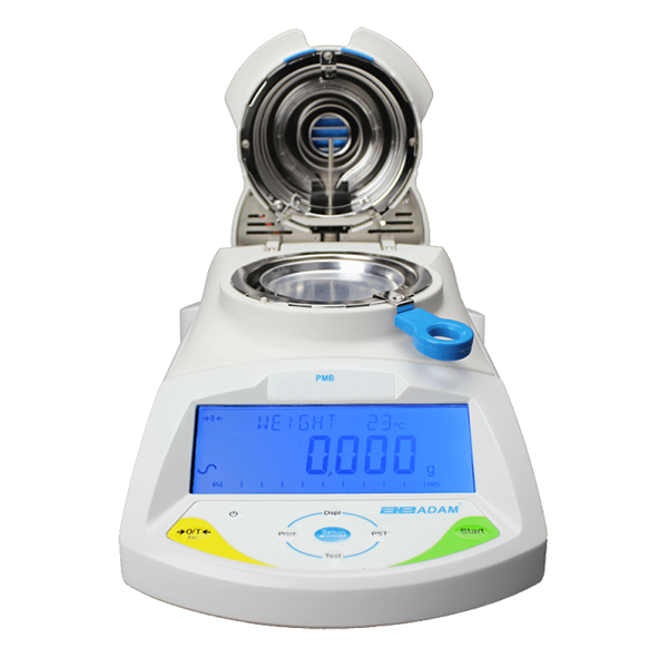 Анализатор влагосодержания PMB-53 с диапазоном навески образца 2-50 г, диапазоном температур 50-160 °C имеет возможность автоматического запуска сушки при закрытой крышке и 3 режима сушки (стандартная, линейная, пошаговая). Характеристики и параметры анализатора влагосодержания Adam PMB-53