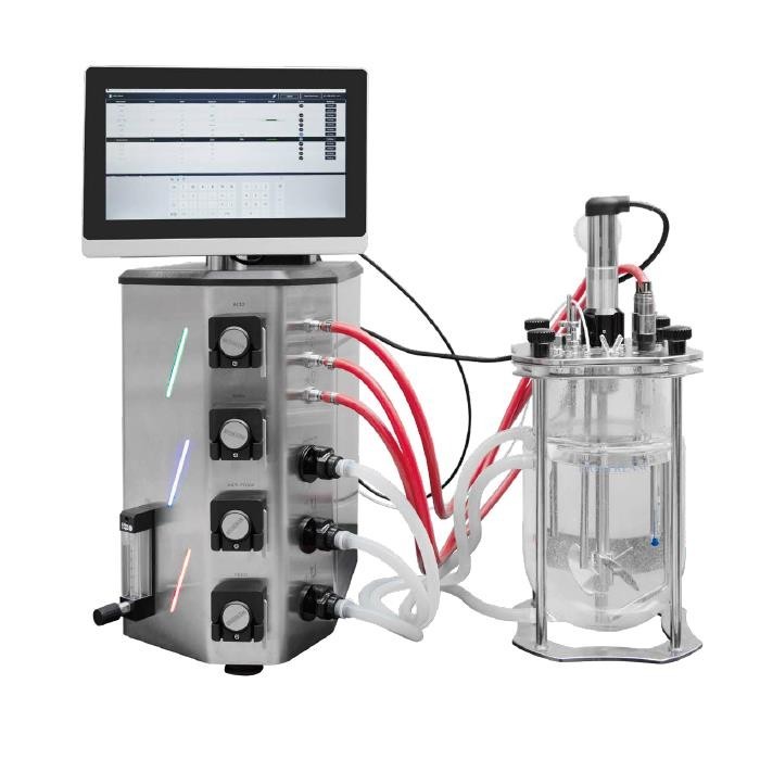 Биореактор BioUniv (аналог биореактор Sartorius Biostat B)— мощная платформа для биопроцессов, позволяющая поддерживать рост практически любых бактерий, грибов, дрожжей, с дополнительными аксессуарами легко адаптируется для работы с клетками млекопитающих, насекомых и растений. Широкоформатный сенсорный дисплей позволяет управлять одновременно шестью биореакторами, проводить калибровку датчиков, устанавливать параметры, запускать и останавливать процесс, программировать каскадное регулирование и фазовые переходы, осуществлять PID регулирование. Для удобства можно управлять процессом с компьютера без сенсорного экрана. Стандартные контролируемые параметры — скорость перемешивания, температура, рН, рО₂, скорость подачи газа (воздух), подача растворов (кислота, щелочь, пеногаситель, подпитка), каскады. Дополнительные возможности — встроенные и внешние перистальтические насосы, анализаторы газов на выходе (О₂/СО₂), измерения оптической плотности/мутности и весы для точного контроля подачи растворов. Альтернативно может быть оснащен насосами Watson-Marlow. Биореактор предназначен для работы в режимах batch, fed-batch, продолжительное культивирование, перфузия. Для удобства автоклавирования в небольших автоклавах может быть оснащен гибкими соединениями. Характеристики биореактора BioUniv