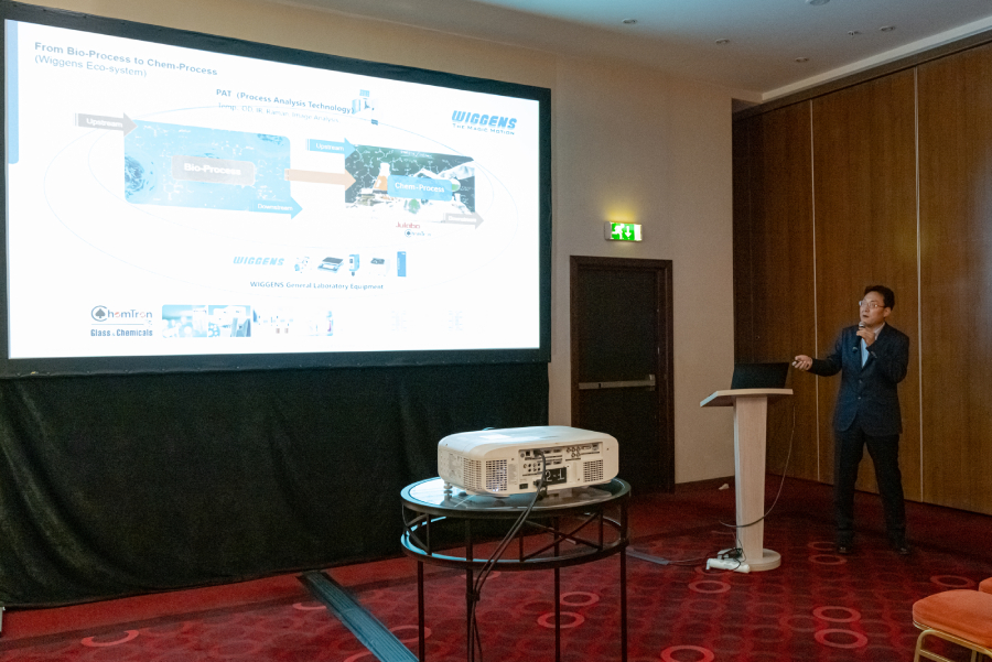 В секции обсуждали характеристики реакторов Wiggens, прибывший на мероприятие генеральный директор этой компании доктор Чжан поделился опытом использования реакторов и автоматизации процессов синтеза. Рассказал о том, какие есть модификации реакторов, как выбирать их под конкретные задачи химического синтеза, которые стоят перед учеными, технологами производств разного типа. Все чаще пользователи требуют кастомизированные модели реакторов. И у Wiggens это направление хорошо развито: модульные системы, частью которой являются химические реакторы, стали одной из самых сильных сторон производителя.