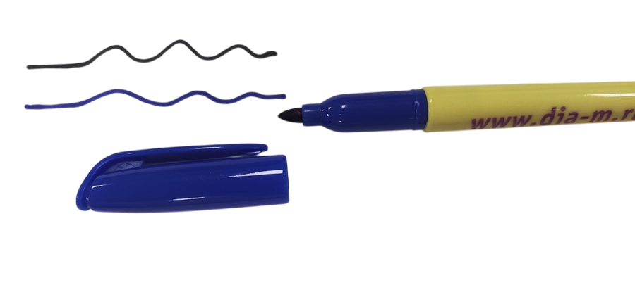 Маркер перманентный по стеклу и пластмассе, имеет толщину линии — ~2-3 мм, круглый наконечник, чернила без добавления толуола и ксилола, может быть выбран в цвете: