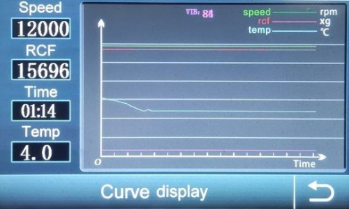 • демонстрация на экране: скорости, относительной центробежной силы, температуры — для одновременного отслеживания изменений;